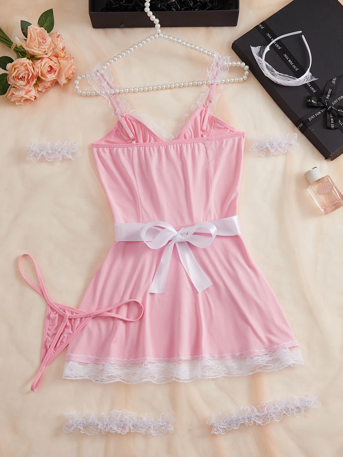 Sexy Women Pleated Micro MINI Dress Bandage Maid Uniform Slip Mini Dress Set Night Club Outfits Allure Ruffled Dress Backless