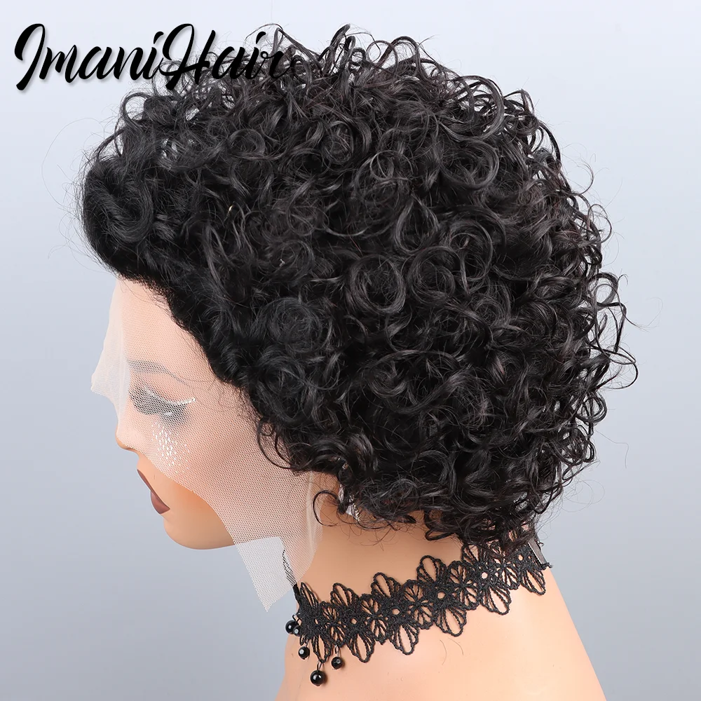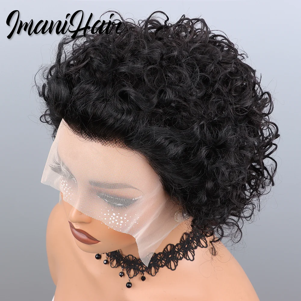 Short Curly Pixie Cut Lace Front Wigs 6 inch, 13X1 Human Hair HD Lace Front Wigs Plucked for Black Women 6 Inch, Natural Black
