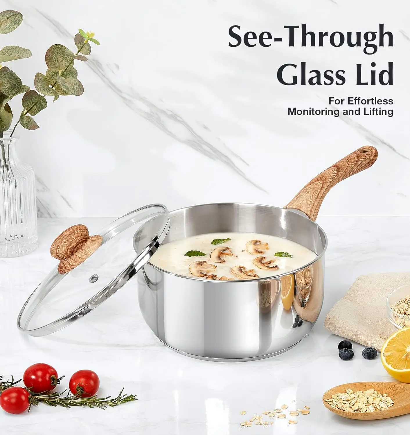Stainless Steel Saucepan Set with Steamer, 18/10 Tri-Ply Base, Cool-Touch Handles, Induction Compatible for Healthy Cooking