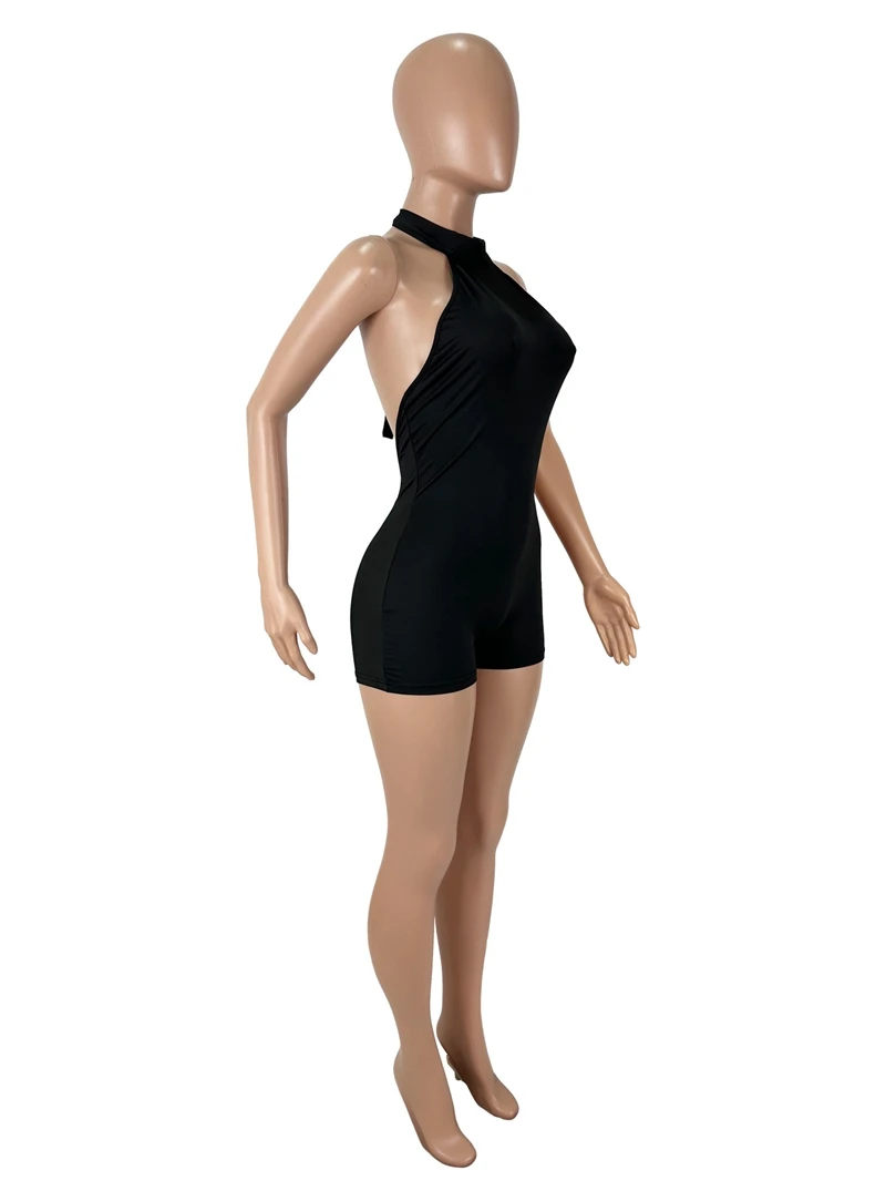 Stylish Lady Halter Backless Rompers 2026 Summer Women Sleeveless Bodycon Sexy Club Party Black Playsuits