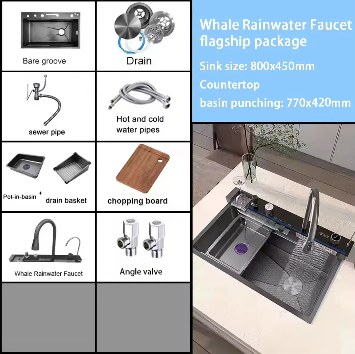 SUS304 Household Multi-functional Double Bowl Smart Sink, Water Catalysis Pesticide Residue Removal for Fruits & Veggies