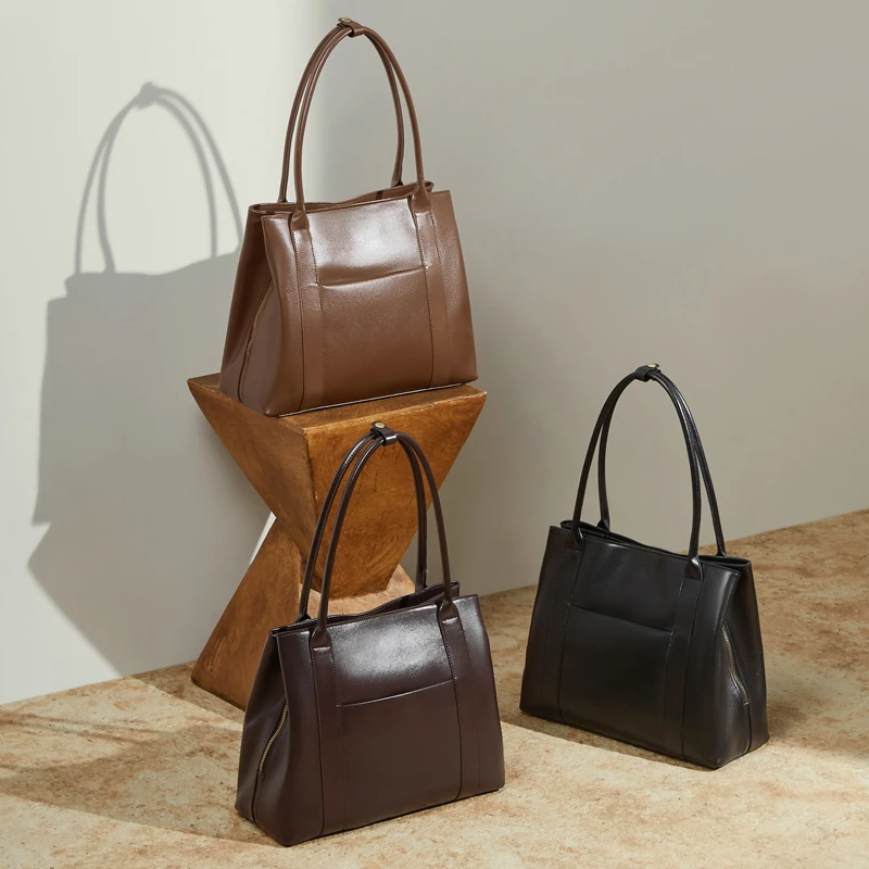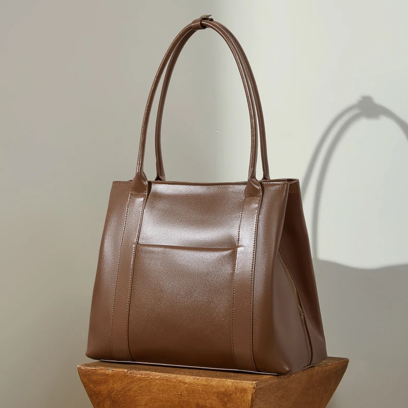 Toptrends Vintage Genuine Leather Large Tote Shoulder Bags For Women 2026 Luxury Designer Bucket Shopper Office Ladies Handbags