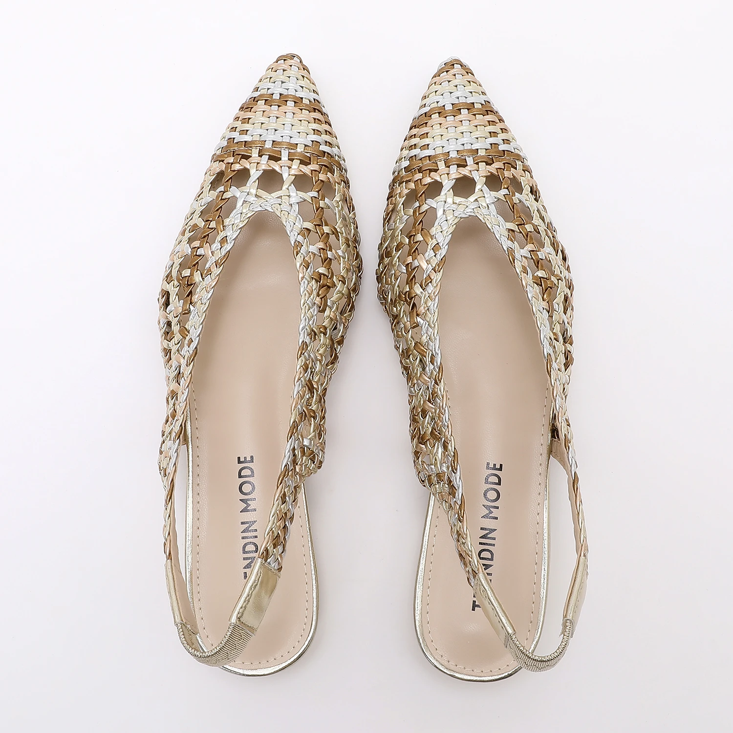 Trendin Mode Women Braided Pointed Toe Slingback Fashion Flat Bottom Elastic Backstrap Sandals