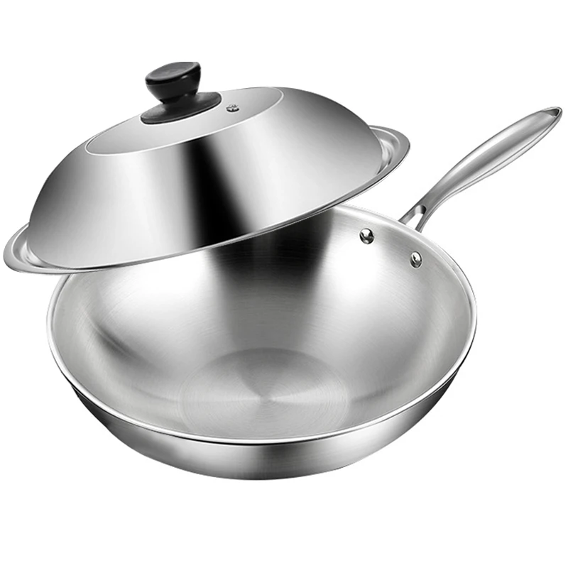 Tri-Ply Stainless Steel Wok Pan with Lid Stir-Frying Pan Induction Cooking Pan Dishwasher and Oven Safe Detachable Handle
