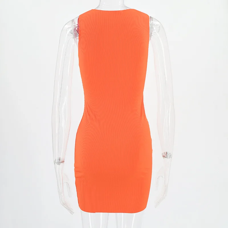 Women Summer Sexy Slim Wrap Hip Dress Solid Patchwork O-neck Sleeveless Mini Dresses INS Fashion High Street Sheath Vestidos