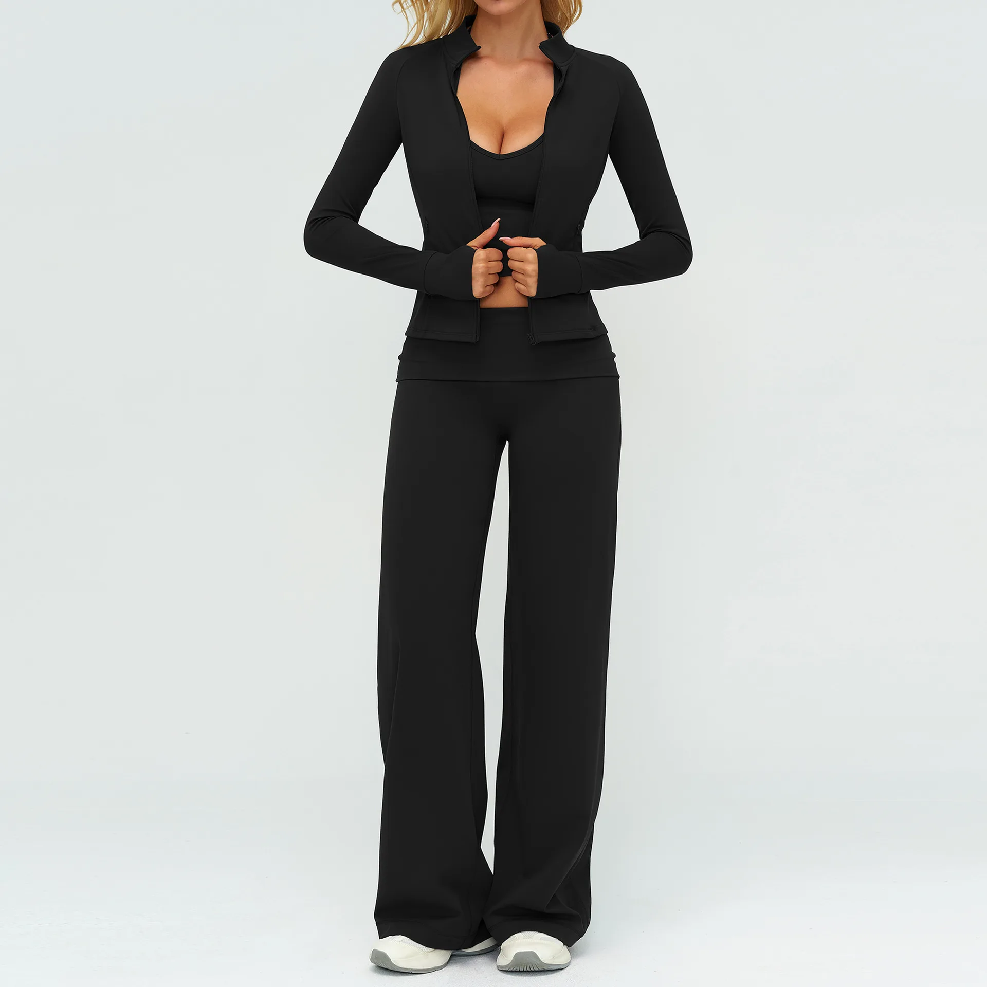 Women Tracksuit 2/3PCS Yoga Set Sportswear Workout Clothes Athletic Wear Gym Outfit Fitness Bra Crop Top Long Sleeve Sports Suit