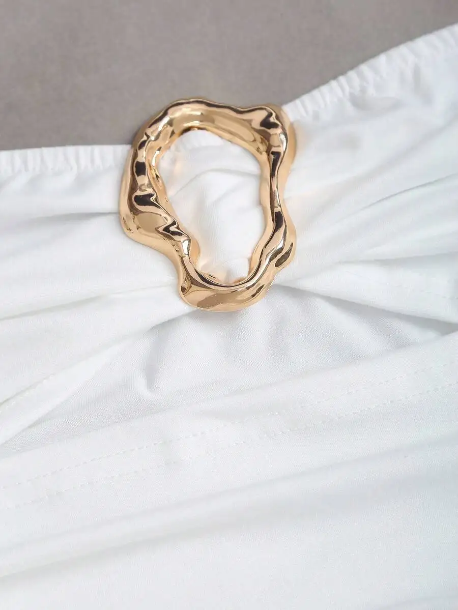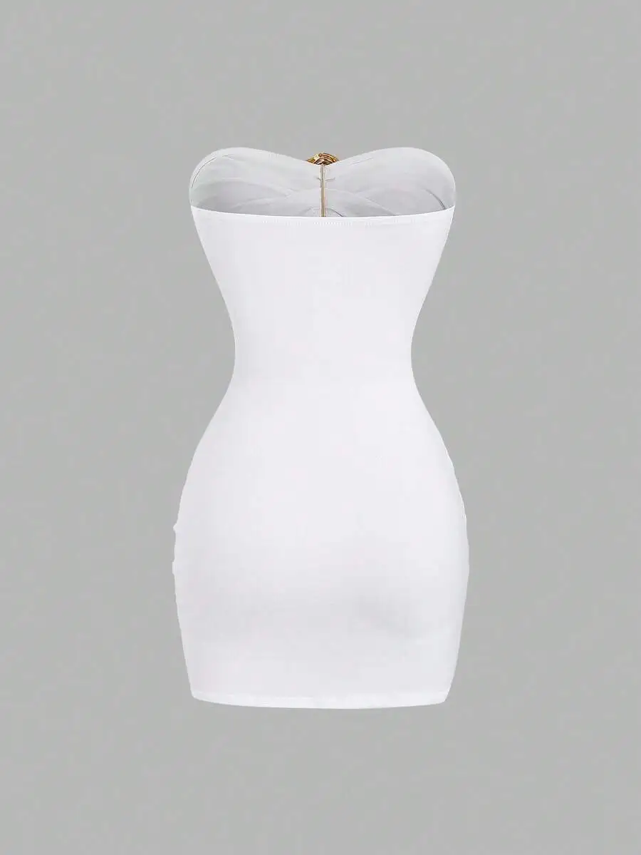 Women’s Sexy Slim-Fit Strapless Bustier Mini Dress with Metal Buckle