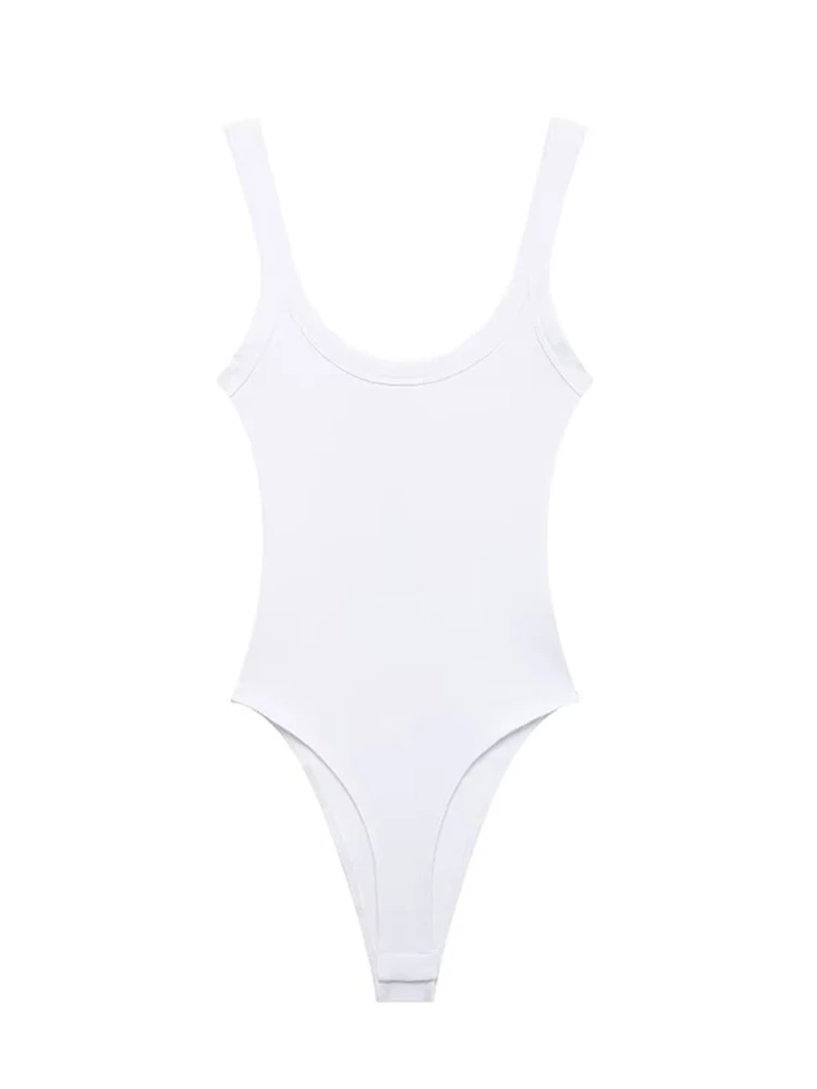 Women’s Skinny Ribbed O-Neck Bodysuits with Straps Snap-Button Sexy Fashion Playsuits Comfortable Stretchy Female Clothing