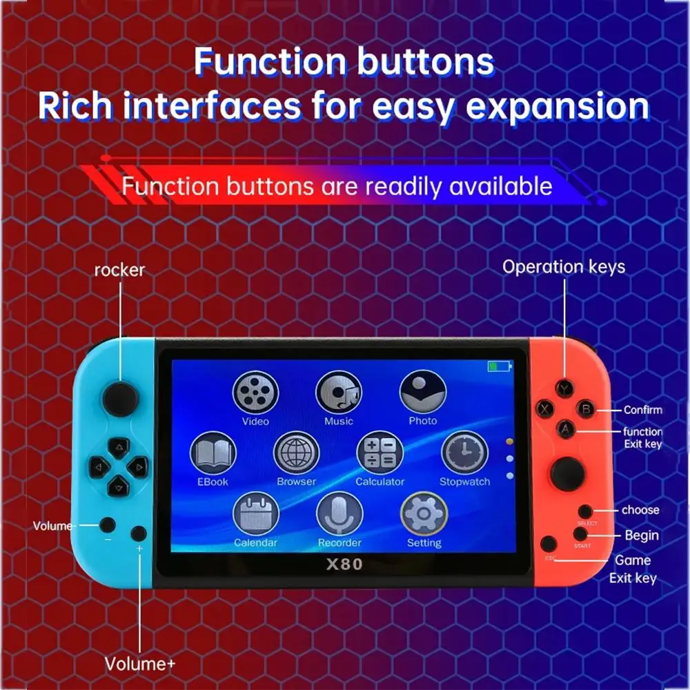 X80 Handheld Game Console 7.0-inch IPS Screen Dual Joystick Ergonomic Compact Buttons Multiplayer Gaming on-the-Go